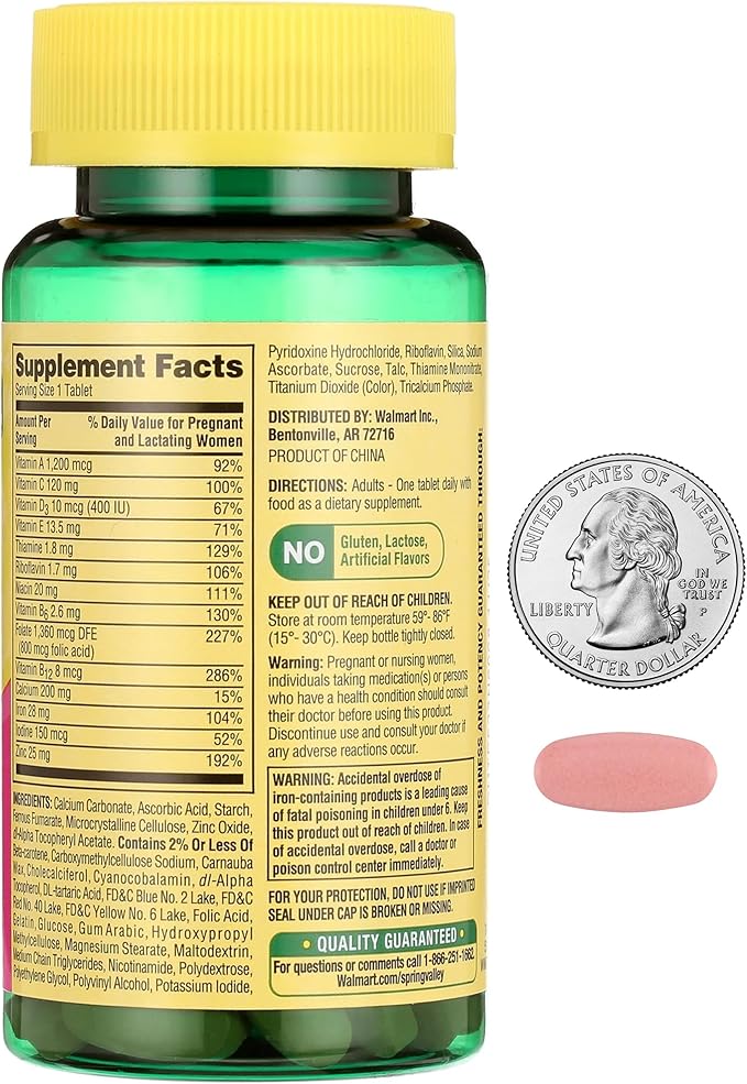 Prenatal Multivitamin and Multimineral, 100 Tablets (Pack of 2) for Pregnant and Nursing Women With 14 Essential Nutrients Including Iron, Calcium, Folic Acid, and Vitamin D, Gluten-Free, Lactose-Free