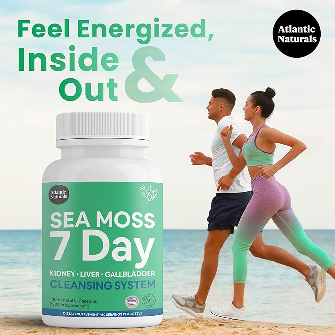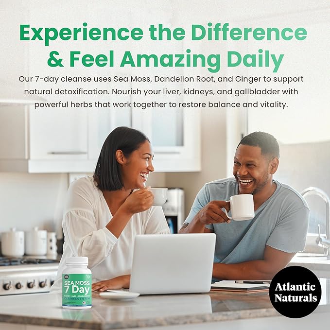 Atlantic Naturals Sea Moss 7 Day Detox Liver, Gallbladder & Kidney Cleanse Capsules- Support with Dandelion Root, Milk Thistle, Burdock Root, Red Clover, Chanca Piedra - 180 Sea Moss Capsules