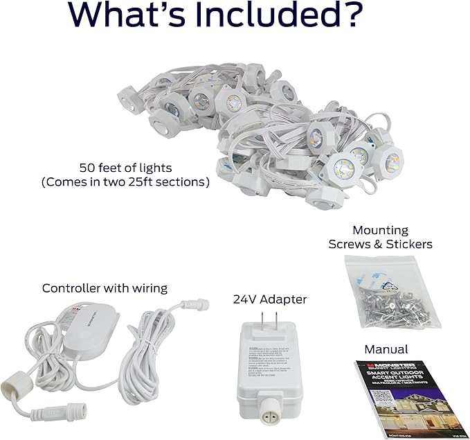 - App & Voice Control with Alexa & Google: Easily control the lights via the Monster Smart app or through voice commands using Alexa or Google Assistant. Customize brightness, colors, patterns, and schedules from your smartphone, or use simple voice prompts to change settings hands-free.