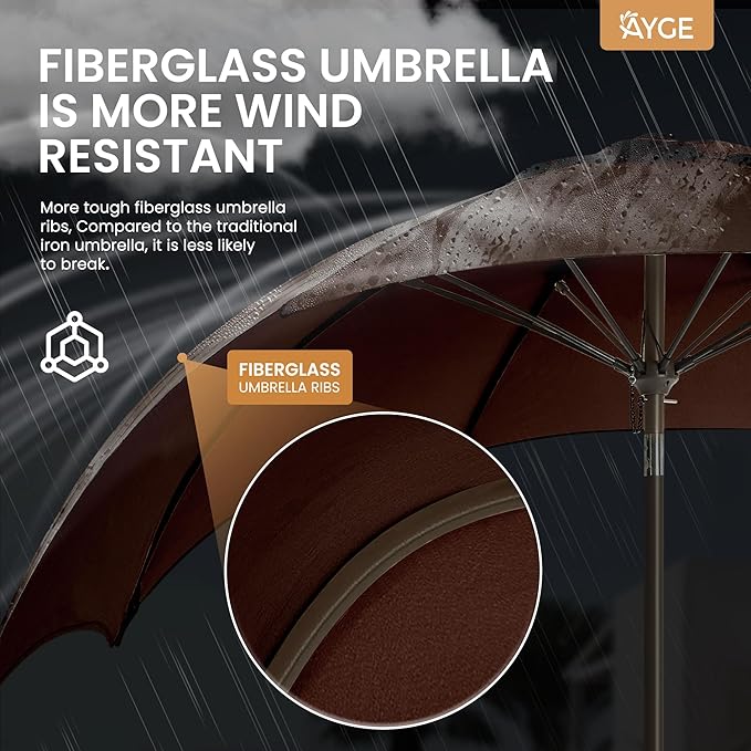 Ayge 9FT Large Outdoor Patio Umbrella Market Table Umbrella-UV Resistant, Easy Push Button Tilt and Crank, 8 Sturdy Fiberglass Ribs Heavy-Duty Pool Umbrella for Deck, Backyard,Garden