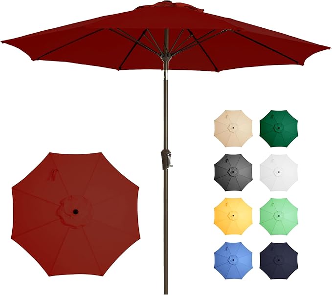 - VERSATILE PATIO UMBRELLA: 9FT Patio Umbrella is ideal for diverse settings such as markets, gardens, decks, backyards, pools, and patio tables. Provides shade for 3 to 4 seat rectangular tables. Essential during sunny seasons, providing respite from harsh sunlight.