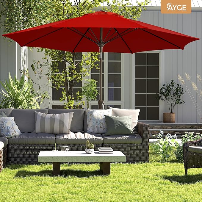 Ayge 9FT Large Outdoor Patio Umbrella Market Table Umbrella-UV Resistant, Easy Push Button Tilt and Crank, 8 Sturdy Fiberglass Ribs Heavy-Duty Pool Umbrella for Deck, Backyard,Garden