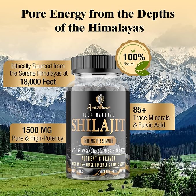 - 100% Natural & Pure: Harvested from over 18,000 ft in the Himalayas, our organic high-grade shilajit gummies are rich in fulvic acid and 85+ trace minerals, enhancing nutrient absorption. Embrace clean, high-quality natural nourishment