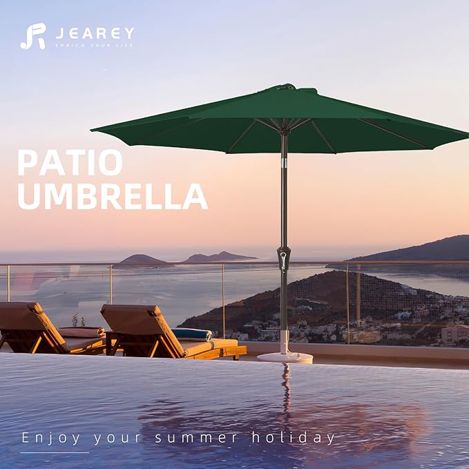 JEAREY 10FT Outdoor Patio Umbrella Outdoor Table Umbrella with Push Button Tilt and Crank, Market Umbrella 8 Sturdy Ribs UV Protection Waterproof for Pool, Garden (Dark Green)