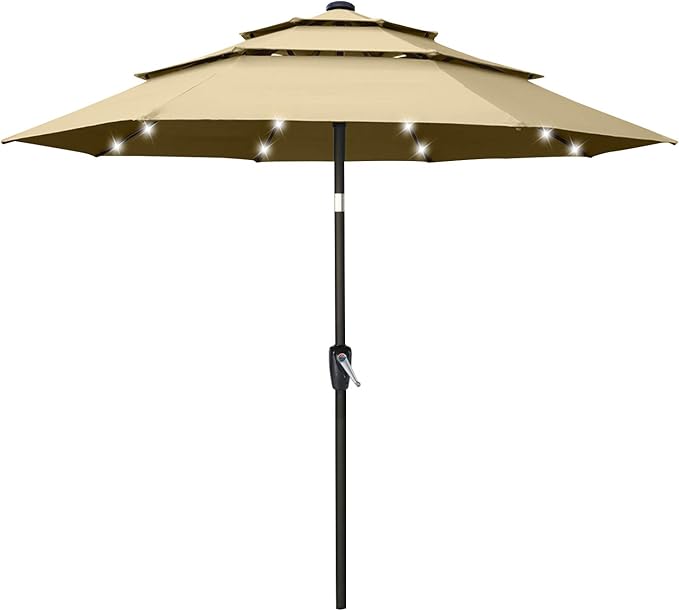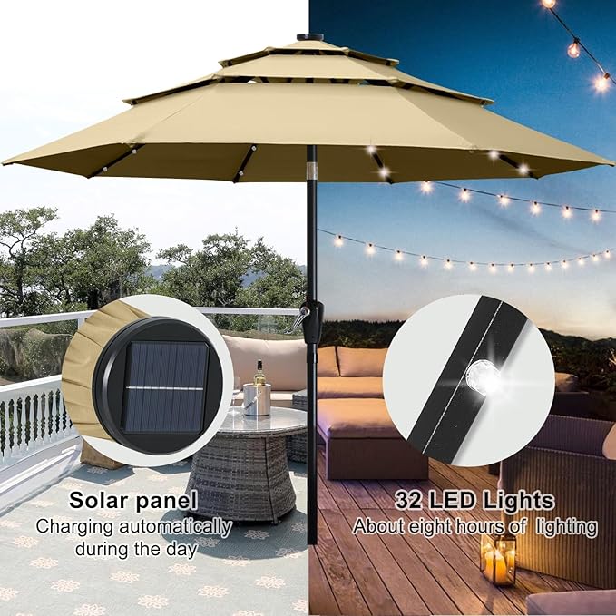 ABCCANOPY Solar Led Patio Umbrellas 3-Tiers 11FT (Khaki)
