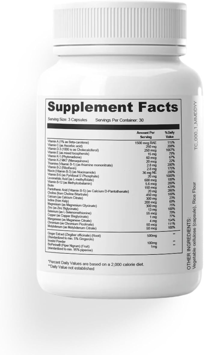 - ALL NATURAL FORMULA - This extensive formula contains 27 essential vitamins and minerals in optimal forms and doses to support both mama and baby. In 3 capsules a day, it provides 100% of the RDI of choline, a crucial nutrient that can be difficult to obtain through food. It also contains ginger for morning sickness and nausea and chromium.