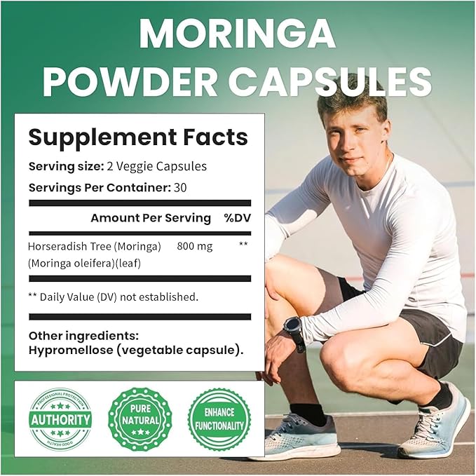 Pure Moringa Powder Capsules - 800mg, Antioxidant Superfood for Energy, Skin Health & Gut Support - Rich in Essential Vitamins & Amino Acids - Natural, Non-GMO, 60 Capsules (2)