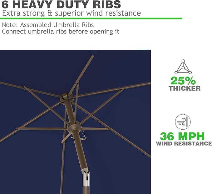 - Sturdy & Durable: This market umbrella is designed with crank open system for easy and quick use. The entire structure of yard umbrella is made of sturdy iron material. Powder coated iron pole and 8 sturdy ribs provides stronger support and are built for stability