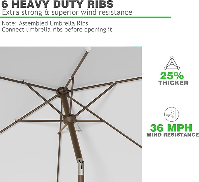- Sturdy & Durable: This market umbrella is designed with crank open system for easy and quick use. The entire structure of yard umbrella is made of sturdy iron material. Powder coated iron pole and 8 sturdy ribs provides stronger support and are built for stability
