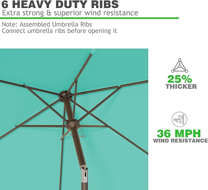 - Sturdy & Durable: This market umbrella is designed with crank open system for easy and quick use. The entire structure of yard umbrella is made of sturdy iron material. Powder coated iron pole and 8 sturdy ribs provides stronger support and are built for stability