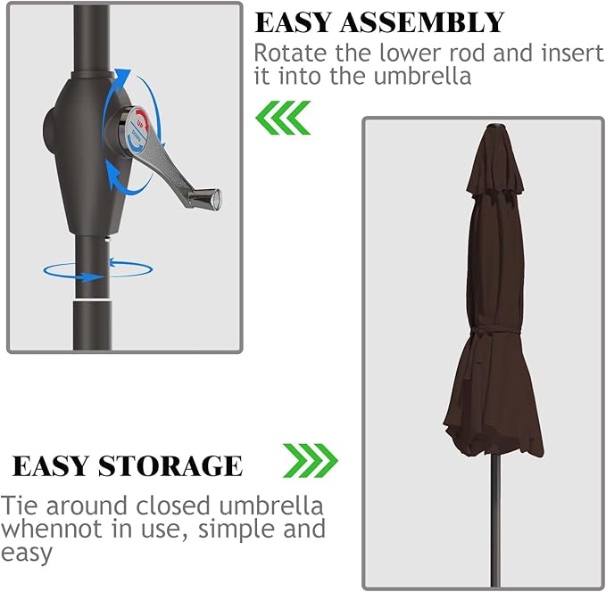 - QUICK SETUP - Detachable pole contributes to easy setup and storage (Note: Umbrella base not included, when used as free standing pool umbrella, it needs over 26.5lb (12KG) patio umbrella stand); Pairing Suggestion - ASIN: B0DPC4G9CS、B0DPC5GRSZ
