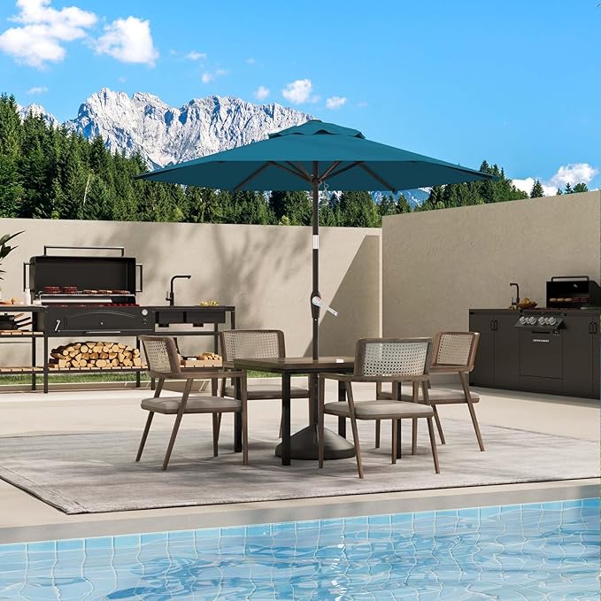 - FADE RESISTANT & WATERPROOF - The 7.5ft patio umbrella is crafted from premium outdoor-rated 100% polyester fiber, this sizable canopy stands up to the elements. Water beads up and rolls away, keeping you dry even on rainy days