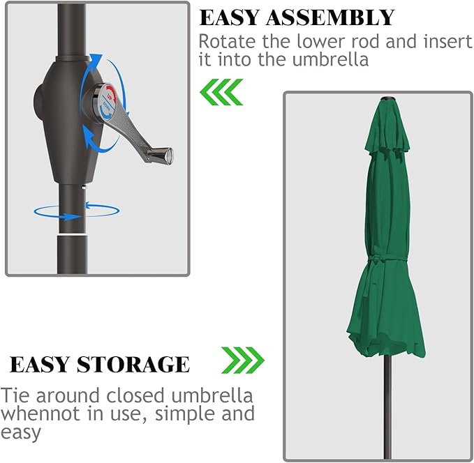 - QUICK SETUP - Detachable pole contributes to easy setup and storage (Note: Umbrella base not included, when used as free standing pool umbrella, it needs over 26.5lb (12KG) patio umbrella stand); Pairing Suggestion - ASIN: B0DPC4G9CS、B0DPC5GRSZ
