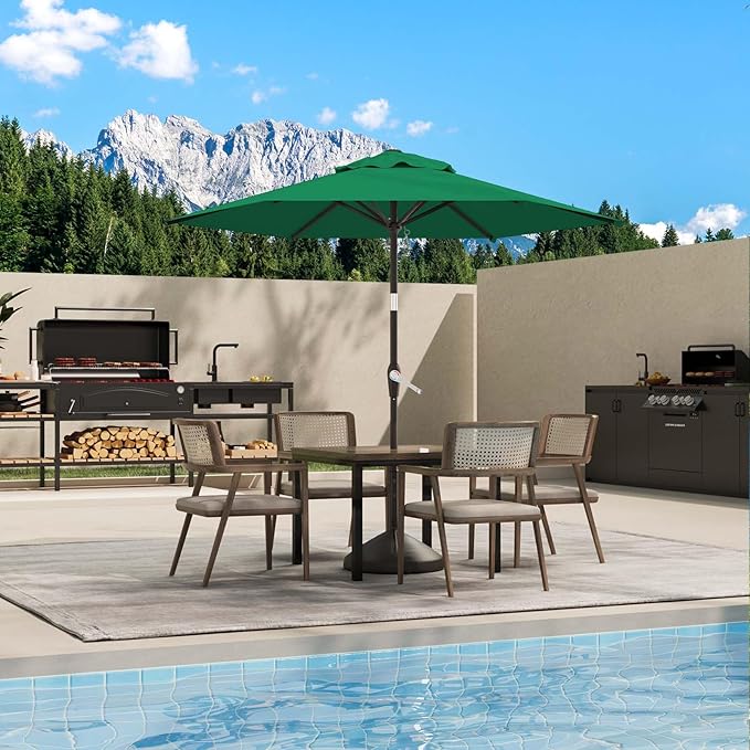 7.5FT Patio Umbrella Table Market Umbrella w/Tilt and Crank Heavy-Duty Round Outdoor Umbrellas for Garden, Deck, Backyard, Pool and Beach, Dark Green
