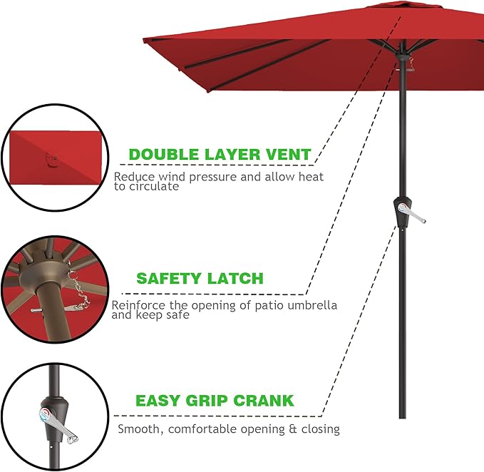 - Easy to Adjust: The market umbrella is designed with crank open system for easy and quick use. Durable security pin assist to form a more stable structure