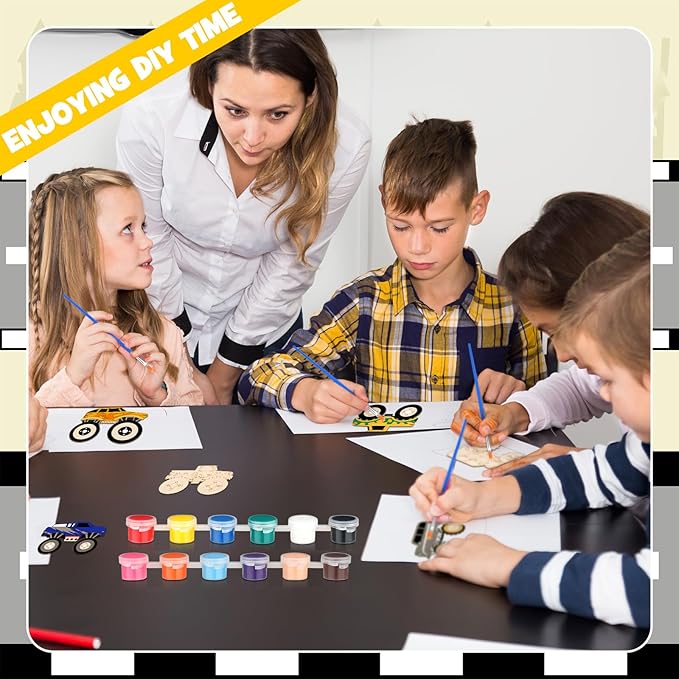 • Colorful Exploration: with our truck cutouts painting kit and have the opportunity to experiment with 6 distinct colors from our 24 pcs acrylic paint strips and 24 pcs soft brushes; Each pot of paint strip has a capacity of about 0.07 oz
