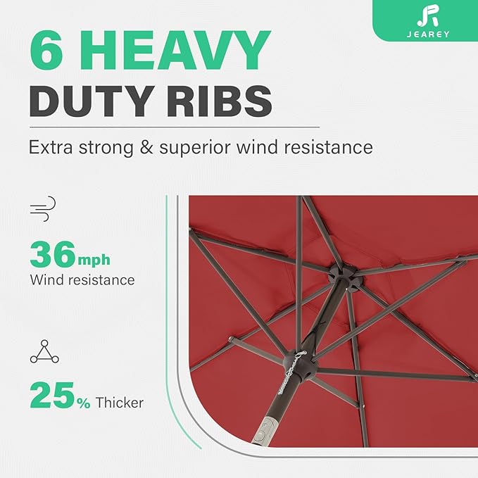 JEAREY 7.5FT Patio Umbrellas Outdoor Umbrella Table Market Umbrella with 6 Ribs,Tilt Button for Pool Deck Backyard Garden,Red