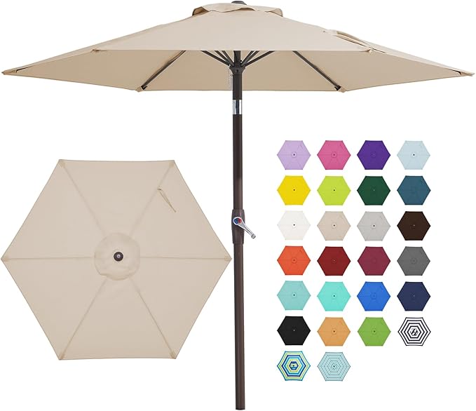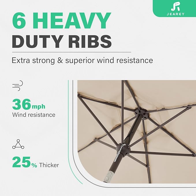 JEAREY 7.5FT Patio Umbrellas Outdoor Umbrella Table Market Umbrella with 6 Ribs,Tilt Button for Pool Deck Backyard Garden,Beige