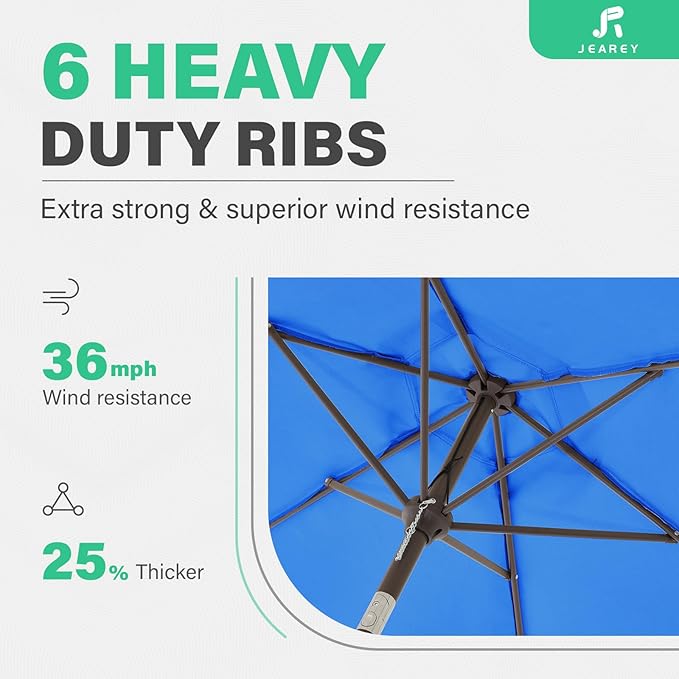 JEAREY 7.5FT Patio Umbrellas Outdoor Umbrella Table Market Umbrella with 6 Ribs,Tilt Button for Pool Deck Backyard Garden,Royal Blue