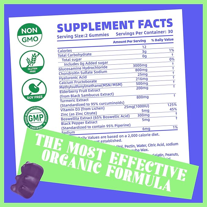 - Our glucosamine Chondroitin gummies can provide an easy and delicious way to consume the powerful ingredients needed for joint support. And with everyone's favorite elderberry-flavored pectin, it's pleasant and easy to chew.