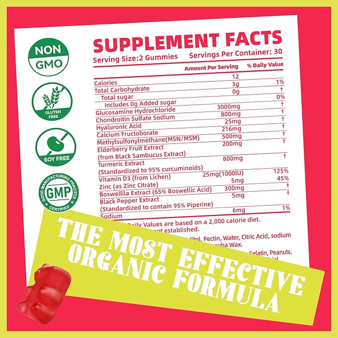 Glucosamine Chondroitin Gummies with MSM & Elderberry Extra Strength - Joint Support, Antioxidant Immune Support Supplement for Adults, Men & Women.Strawberry