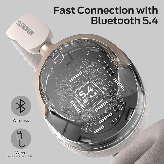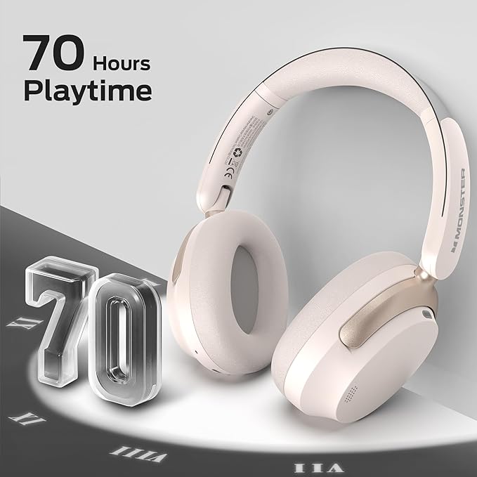 Monster Persona 3rd ANC Wireless Headphones with Bluetooth 5.4, Noise Cancelling Headphones with Clear Talk, Foldable Lightweight Over Ear Headphone, 70H Playtime, Dual Device Pairing, White