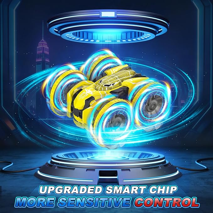 • Powerful Performance: Equipped with a high-efficiency motor, it provides strong driving force, enabling the RC stunt car to sprint quickly. On land, it supports 360-degree rotation and 180-degree reversal, realizing bidirectional driving. In the water, it can also rotate 360 degrees. This unique design makes the driving experience more abundant, and it can easily handle both straight-line racing and complex obstacles.