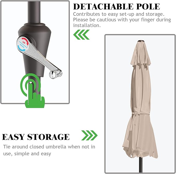 - QUICK SETUP - Detachable pole contributes to easy setup and storage (Note: Umbrella base not included, when used as free standing pool umbrella, it needs over 26.5lb (12KG) patio umbrella stand); Pairing Suggestion - ASIN: B0DPC4G9CS