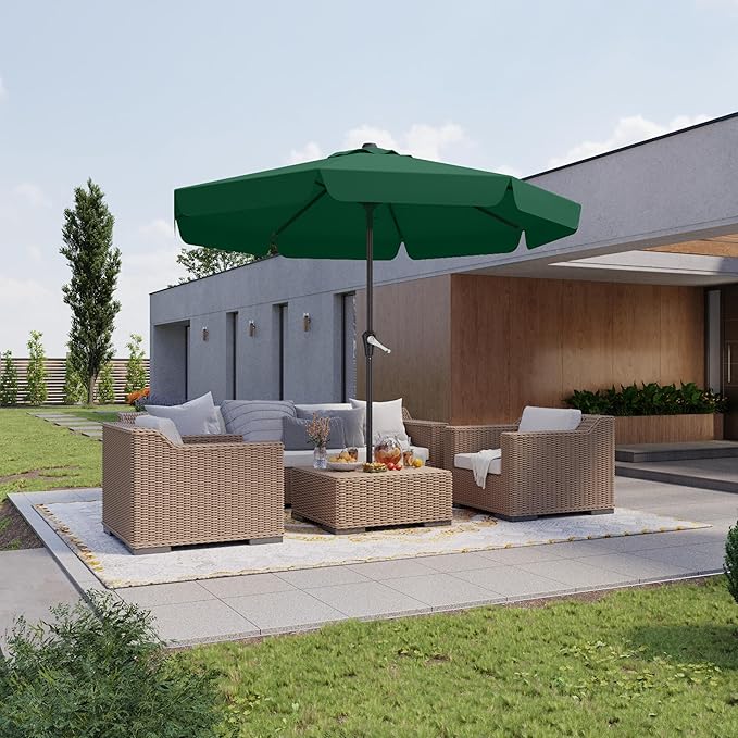 11FT Patio Umbrella Table Market Umbrella w/Crank Outdoor Umbrellas for Garden, Deck, Backyard, Pool and Beach, Dark Green