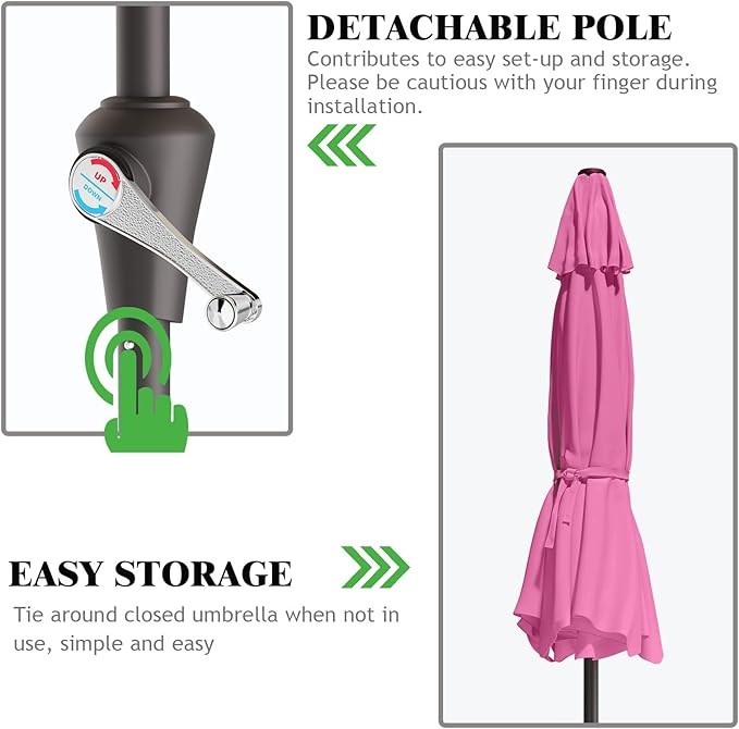 - QUICK SETUP - Detachable pole contributes to easy setup and storage (Note: Umbrella base not included, when used as free standing pool umbrella, it needs over 26.5lb (12KG) patio umbrella stand); Pairing Suggestion - ASIN: B0DPC4G9CS