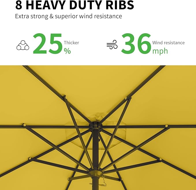 10FT Patio Umbrella Table Market Umbrella w/Tilt and Crank Outdoor Umbrellas for Garden, Deck, Backyard, Pool and Beach, Yellow