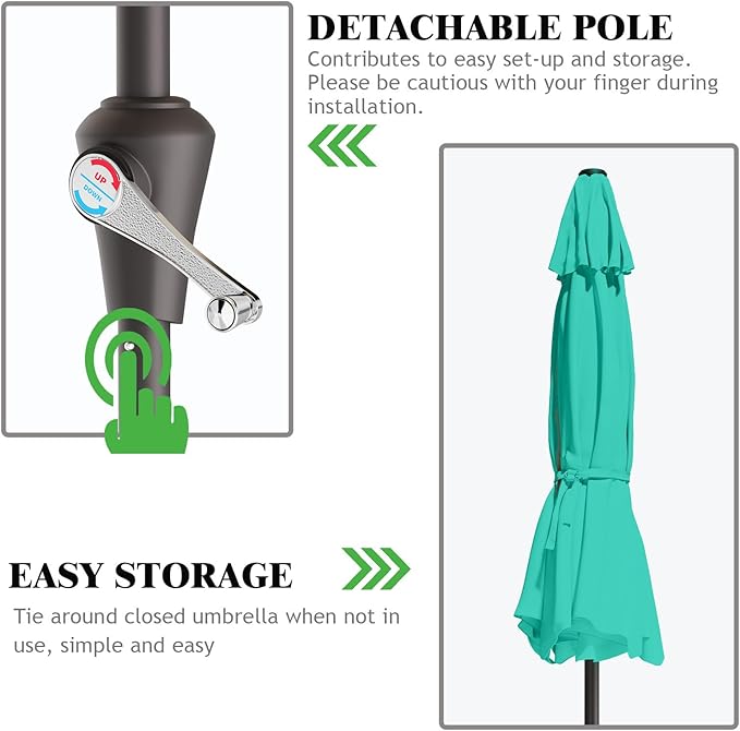 - QUICK SETUP - Detachable pole contributes to easy setup and storage (Note: Umbrella base not included, when used as free standing pool umbrella, it needs over 26.5lb (12KG) patio umbrella stand); Pairing Suggestion - ASIN: B0DPC4G9CS
