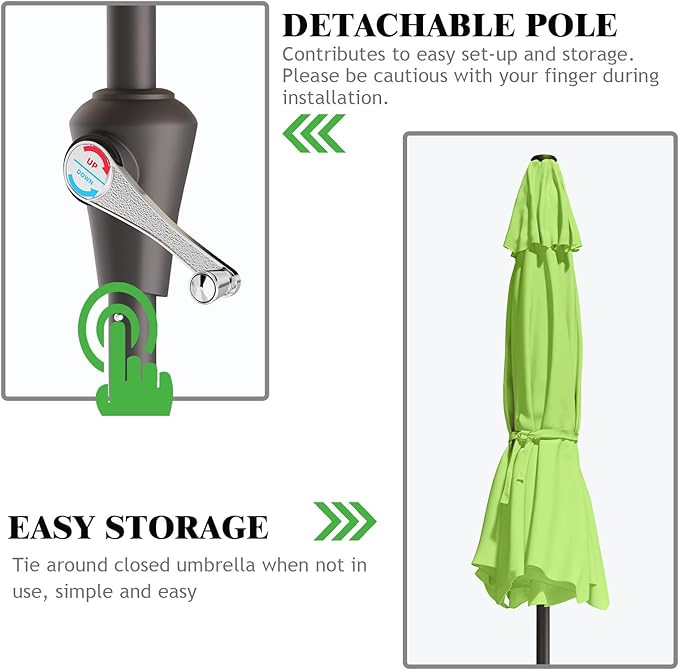 - QUICK SETUP - Detachable pole contributes to easy setup and storage (Note: Umbrella base not included, when used as free standing pool umbrella, it needs over 26.5lb (12KG) patio umbrella stand); Pairing Suggestion - ASIN: B0DPC4G9CS