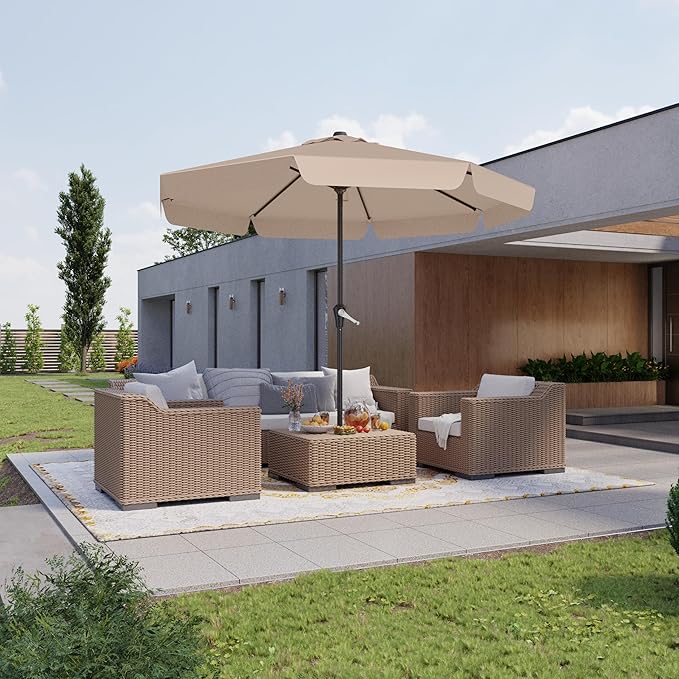 - CONVENIENT CRANK HANDLE - Adjusting the shade is simple with the crank-lift system. A few turns raises the canopy to the perfect height. Lowering is just as easy - no heavy lifting required. The tilt mechanism follows suit with an intuitive push-button design. A brief press angles the umbrella outdoor patio however you like. Find just the right shading whether seated or standing