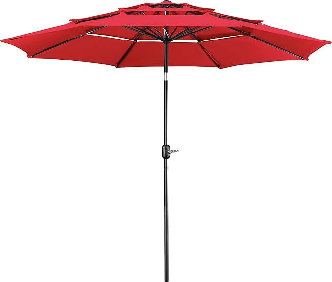 Yaheetech 3 Tier Patio Umbrella 10ft Vented Outdoor Large Market Table Umbrella with 8 Sturdy Ribs and 1.5" Umbrellla Pole, Double-layer Cloth & Push-button Tilting & Crank for Pool/Garden/Lawn Red