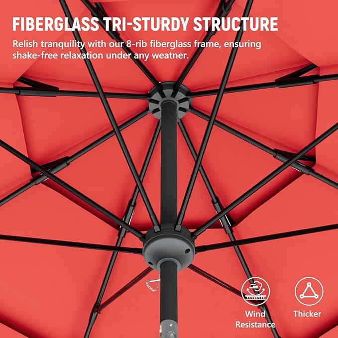 - Fiberglass Ribs - This market umbrella is equipped with fiberglass ribs, providing stronger toughness and stability than traditional iron ribs, allowing the umbrella to bend effectively in strong wind conditions without easily breaking.