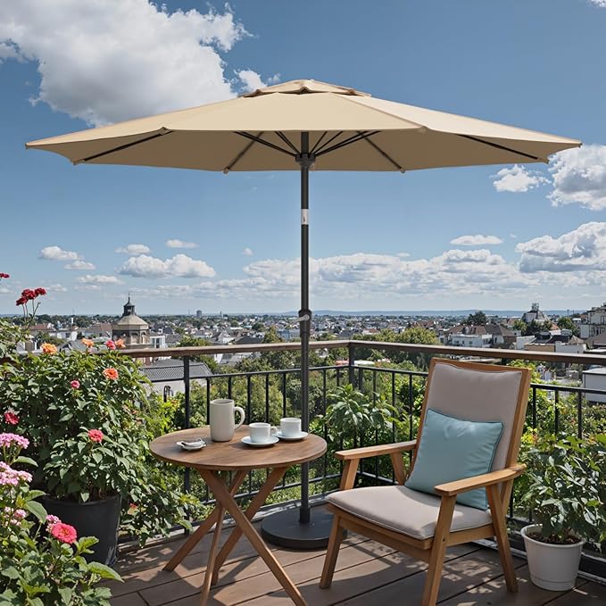 - Push Button Tilt -The simple crank and tilt button allow you to adjust the tilt angle of the garden umbrella according to the position of the sun, achieving maximum shading area.