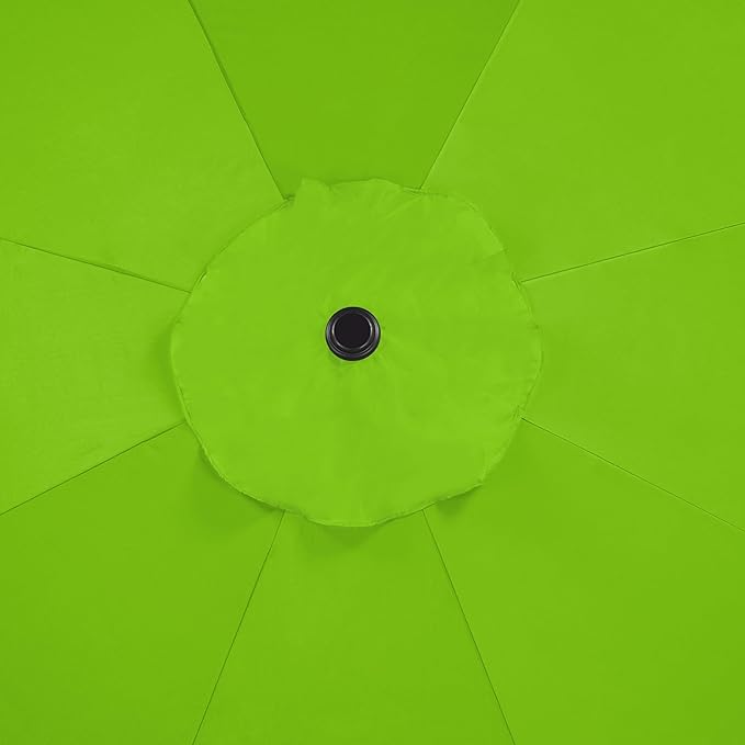 - Specifications: Canopy color: Grass Green; Material: 180g polyester, powder-coated iron; Umbrella rib qty.: 8; Canopy diameter: 9ft; Overall height: 7.9ft; Umbrella pole diameter: 1.5”; Package includes: patio umbrella, assembly instructions