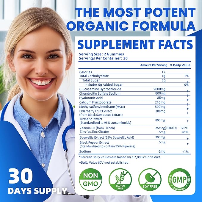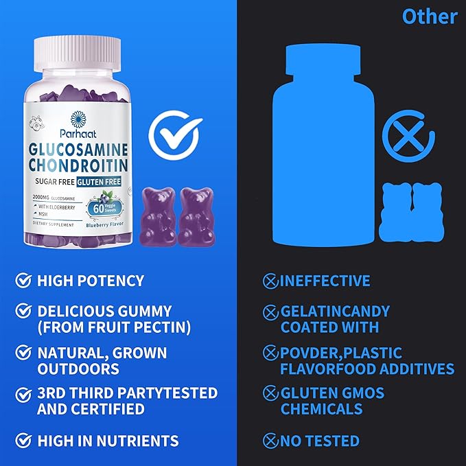 Glucosamine Chondroitin Gummies with MSM & Elderberry Extra Strength - Joint Support, Antioxidant Immune Support Supplement for Adults, Men & Women.Blueberry