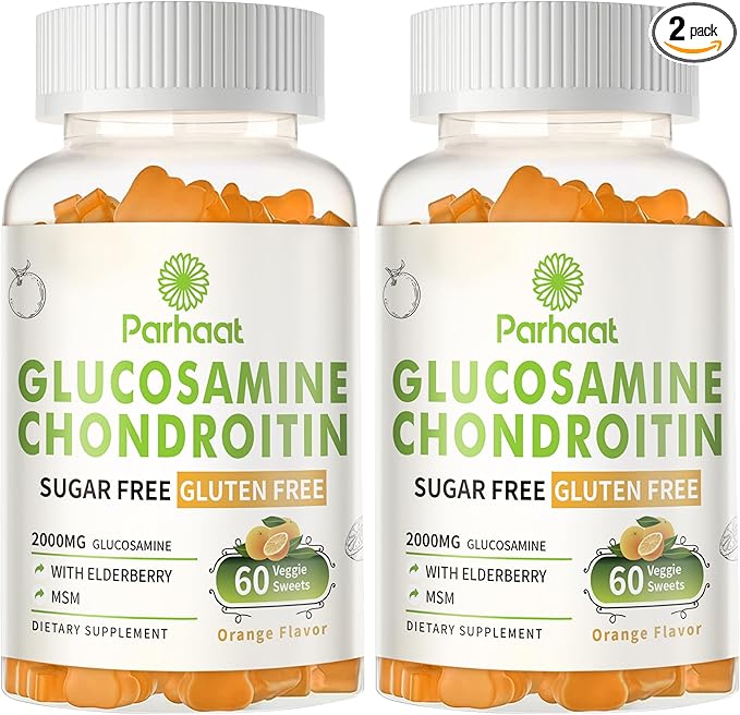 Glucosamine Chondroitin Gummies with MSM & Elderberry Extra Strength - Joint Support, Antioxidant Immune Support Supplement for Adults, Men & Women.Orange-2pack