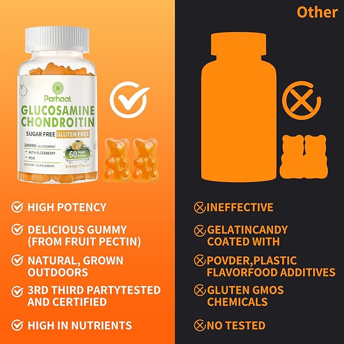 Glucosamine Chondroitin Gummies with MSM & Elderberry Extra Strength - Joint Support, Antioxidant Immune Support Supplement for Adults, Men & Women.Orange