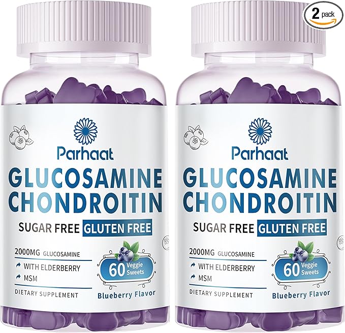 Glucosamine Chondroitin Gummies with MSM & Elderberry Extra Strength - Joint Support, Antioxidant Immune Support Supplement for Adults, Men & Women.Blueberry-2pack