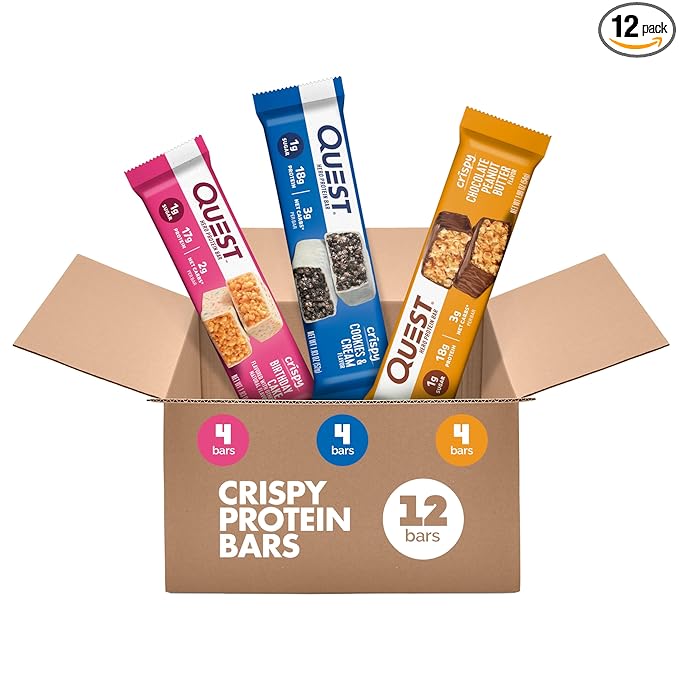 Quest Nutrition Crispy Variety Pack Protein Bars, Protein Rich, Low Sugar, Gluten Free, 12 Count