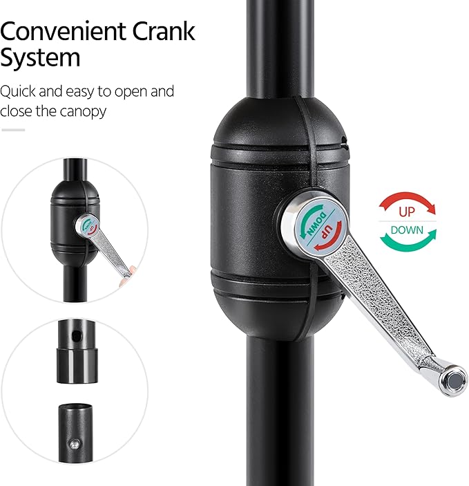 - Simple Setup & Use: This easy-to-use canopy comes preassembled, requiring just 1 second to connect the pole. Simply use the crank to open/close and push the button to tilt, making setup and operation effortless
