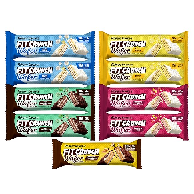 FITCRUNCH Wafer Protein Bars, 16g of Protein & 1-3g of Sugar (9 Bars, Variety Pack)