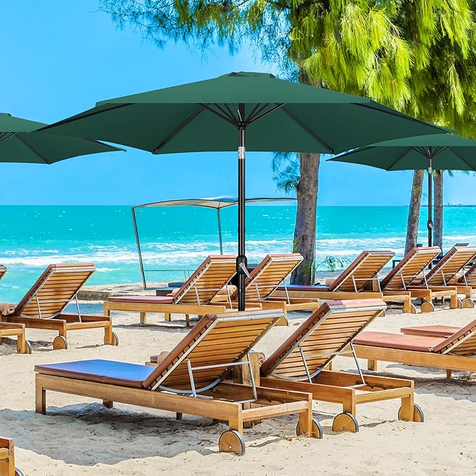 Yaheetech Patio Umbrella, 10FT Outdoor Table Umbrella Market Umbrella with Push Button Tilt and Crank & Sturdy Ribs, Yard Umbrella for Garden, Deck, Backyard, Pool, Dark Green