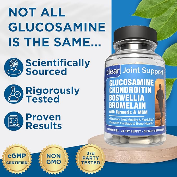 Glucosamine Chondroitin MSM Turmeric - Clear Maximum Joint Support, Healthy Cartilage Growth, Joint Flexibility Mobility, Bone Health - 2,075mg with Boswellia Quercetin Bromelain - 90 Capsules