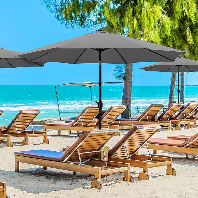- Handy Crank-controlled Canopy: The crank on the central pole is designed to control the opening and closing of the canopy, which helps you to set this 10ft umbrella up rapidly to offer shade over a patio furniture set of a 54-62" table and 6 to 8 chairs or 2 pool loungers