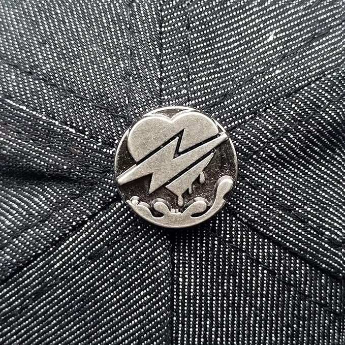 - 100% Cotton Denim Classic Material Heavy Stitches Cap,7.0cm Curved Brim Hats for Men & Women.Front is Big Japanese Thor Embroidery and Alloy Metal Die-Cast Embossed Button Brand Logo.The Lining Has Angel Of Love Printed On It