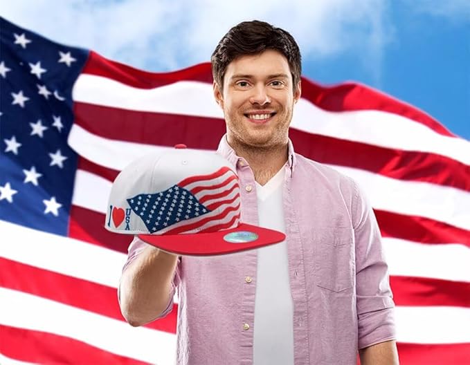- 100% Cotton Classic Material Heavy Stitches Cap,7.0cm Flat Brim Hats for Men & Women.Front is Big USA Flag and Lady Liberty embroidery.